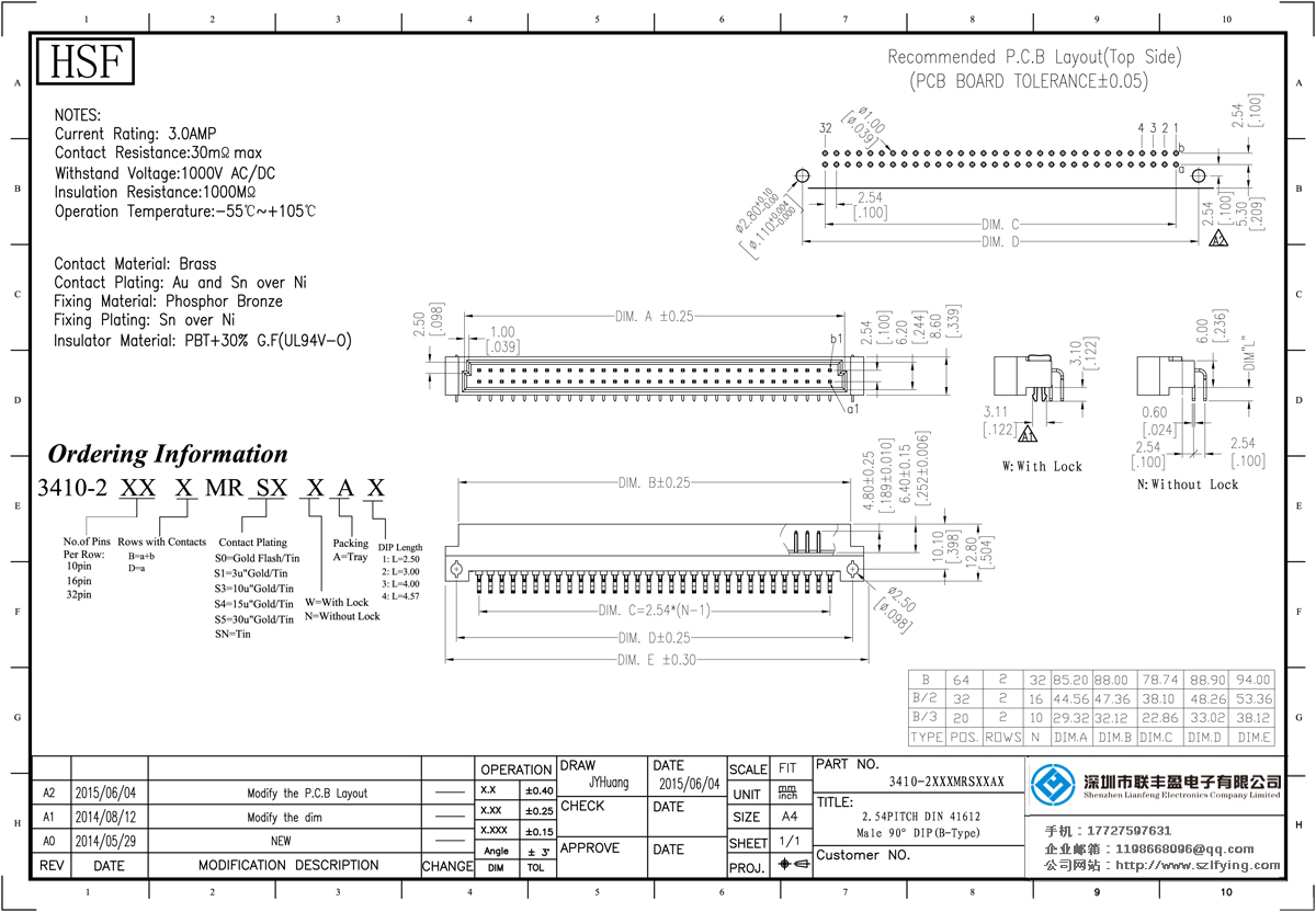 產(chǎn)品分類:DIN 41612連接器 產(chǎn)品型號:聯(lián)豐盈 2.54間距 90度彎插型 公座 2-16P DIN41612 板對板連接器 技術(shù)參數(shù):額定電流:3.0amp電流電阻:30m最大耐壓:1000V的交流/直流絕緣電阻:1000分鐘操