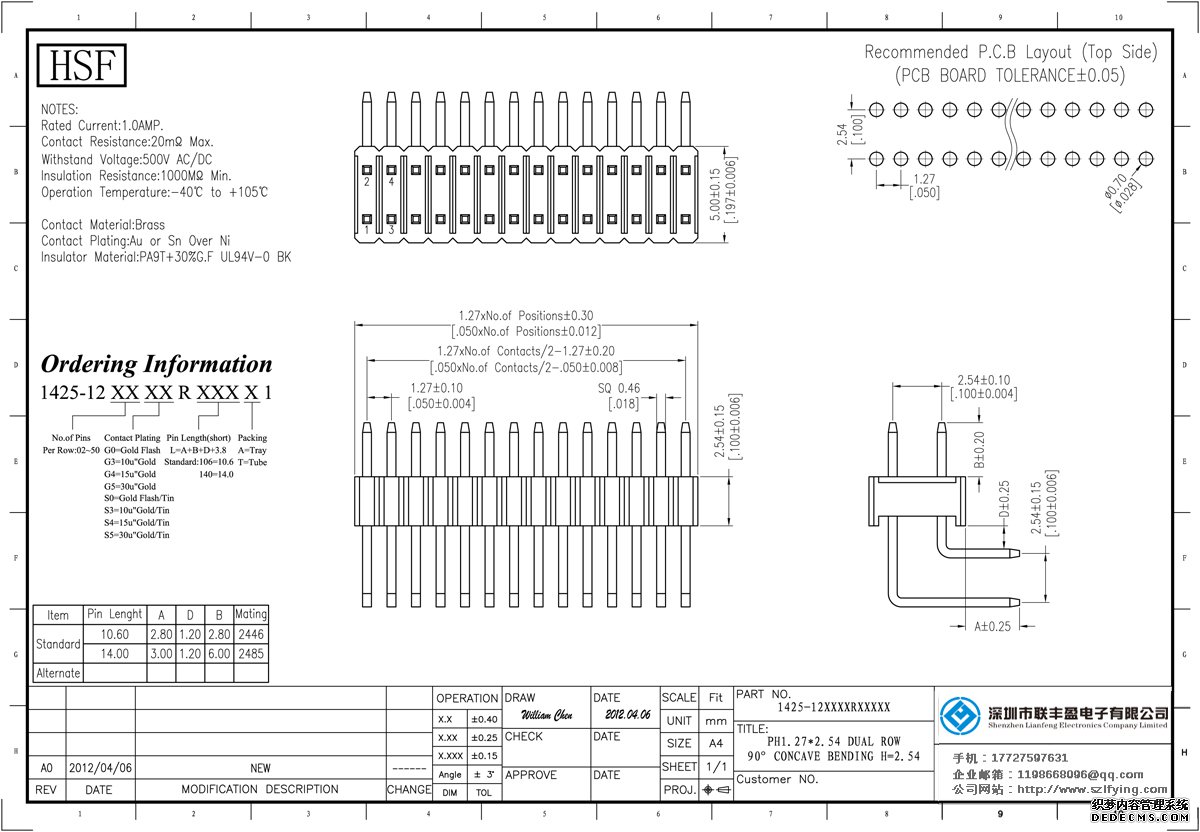 所屬分類:排針連接器 產品規格:1.27*2.54 雙排 90 DIP 排針 UL認證 技術參數:額定電流:1.0amp電流電阻:20m最大絕緣電阻:1000m承受電壓:AC 500V /分鐘工作溫度:40﹣℃+ 105℃接觸材料: