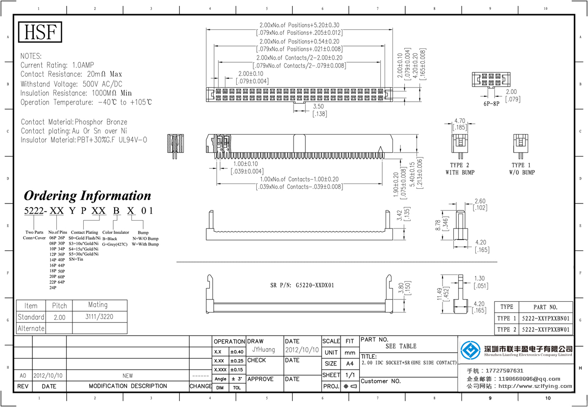 產(chǎn)品分類:IDC插座連接器 產(chǎn)品型號:2.00 彈片型 磷銅 帶凸點 IDC 廠家直銷 技術參數(shù):額定電流:1.0amp電流電阻:20m最大絕緣電阻:1000mmin耐壓:1000V AC /分鐘工作溫度:40﹣℃+ 105℃接觸