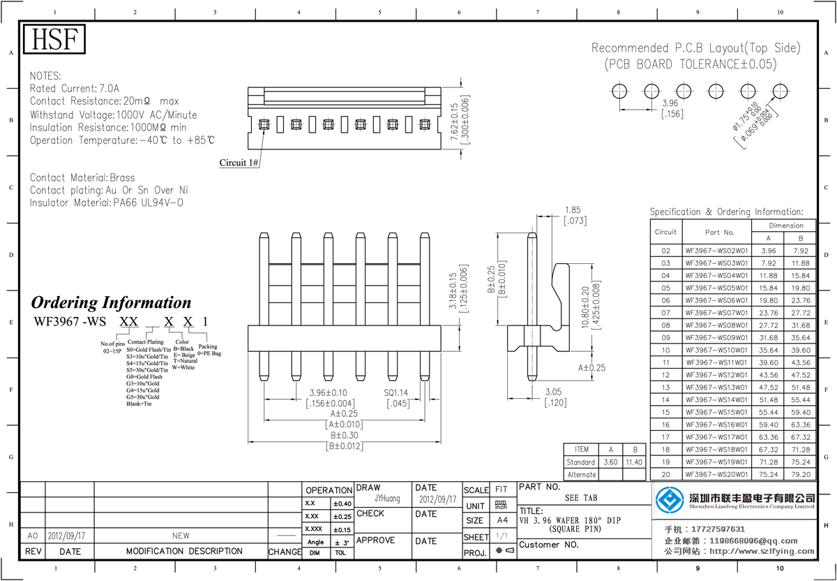 產(chǎn)品分類:Wafer連接器 產(chǎn)品型號:3.96MM 2P 配線型Housing 聯(lián)豐盈生產(chǎn) 技術(shù)參數(shù):額定電流:5.0amp接觸電阻:20m最大絕緣電阻:1000m min 承受voltange:1000V AC /分鐘工作溫度:25℃+ 85℃接觸材