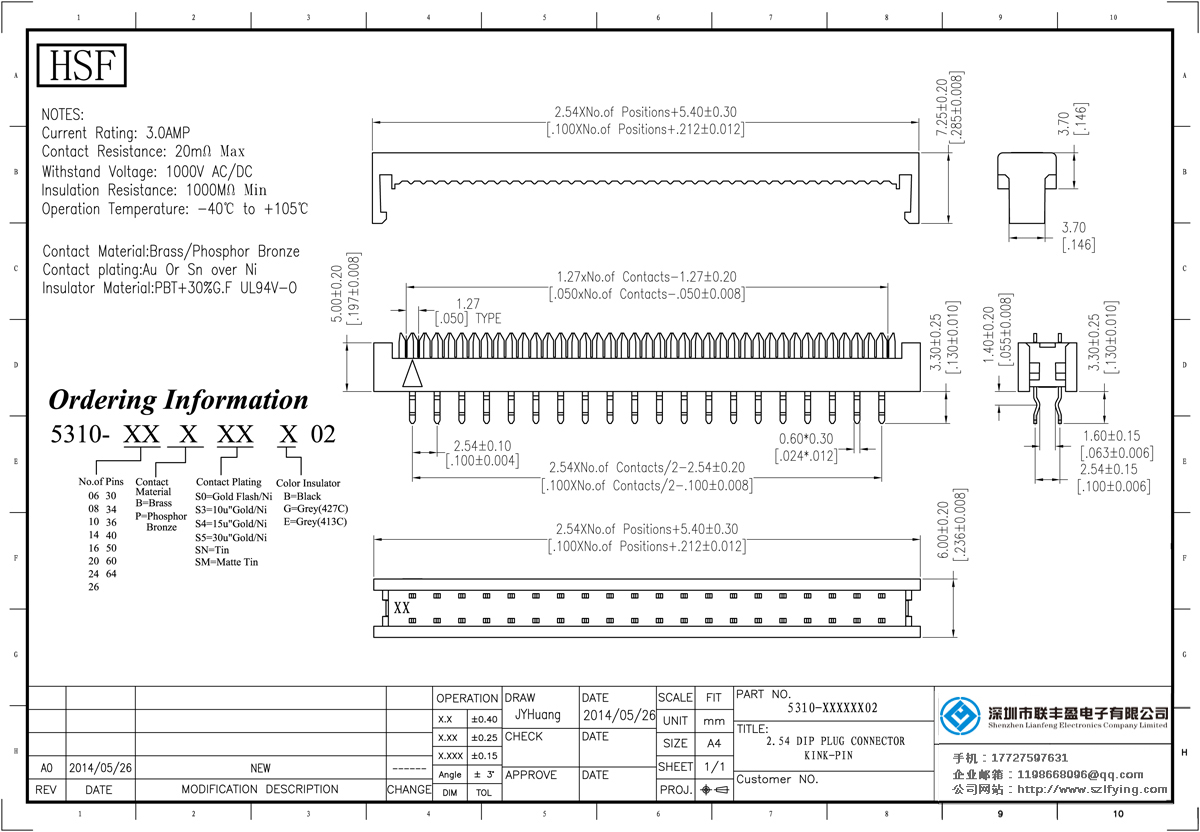 產品分類:DIP插頭連接器 產品型號:抗氧化 2.54MM 26P DIP PLUG 生產聯豐盈 技術參數:額定電流:3.0amp電流電阻:20m最大絕緣電阻:1000mmin耐壓:1000V AC /分鐘工作溫度:40﹣℃+ 105℃接觸材