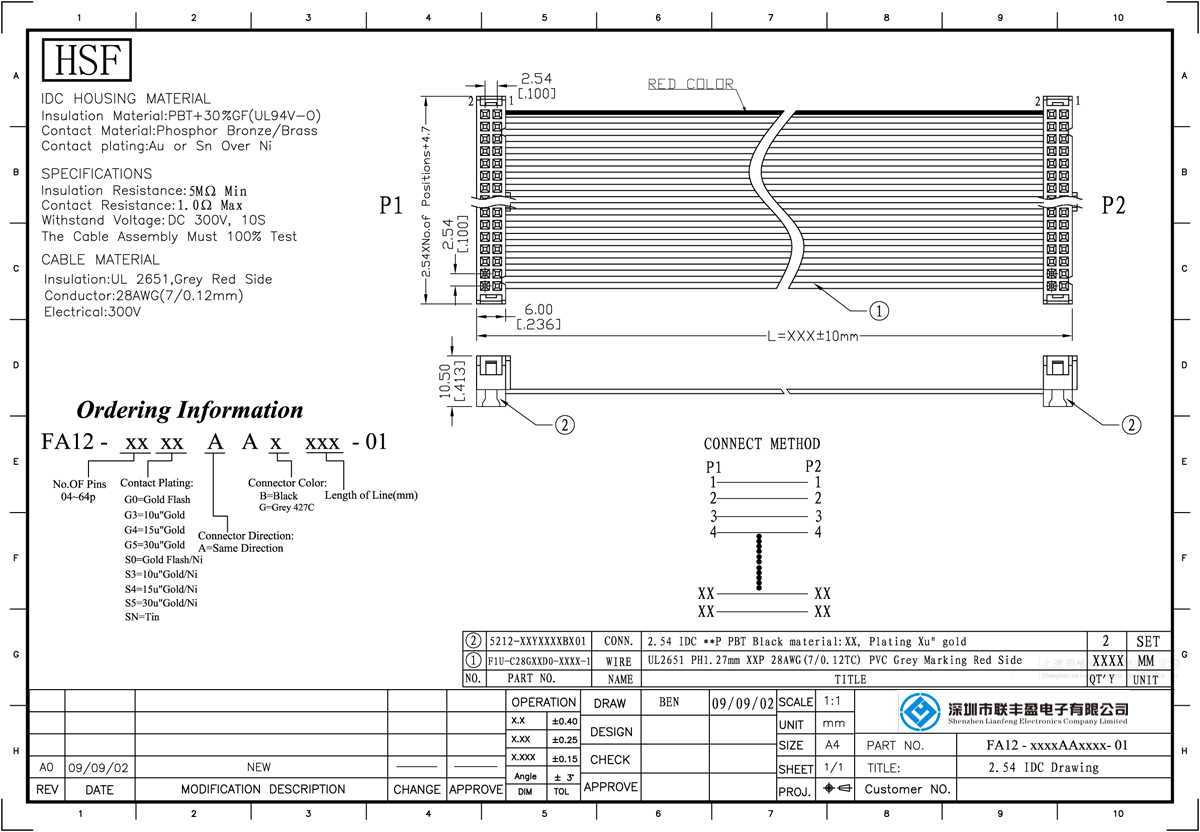 產品特點:  排線具有優良的電性能、介電性能、耐熱性、耐酸堿,耐油,耐熱,耐濕,耐霉菌等特性.產品材質:  PBT+30%GF(UL94V-0) "