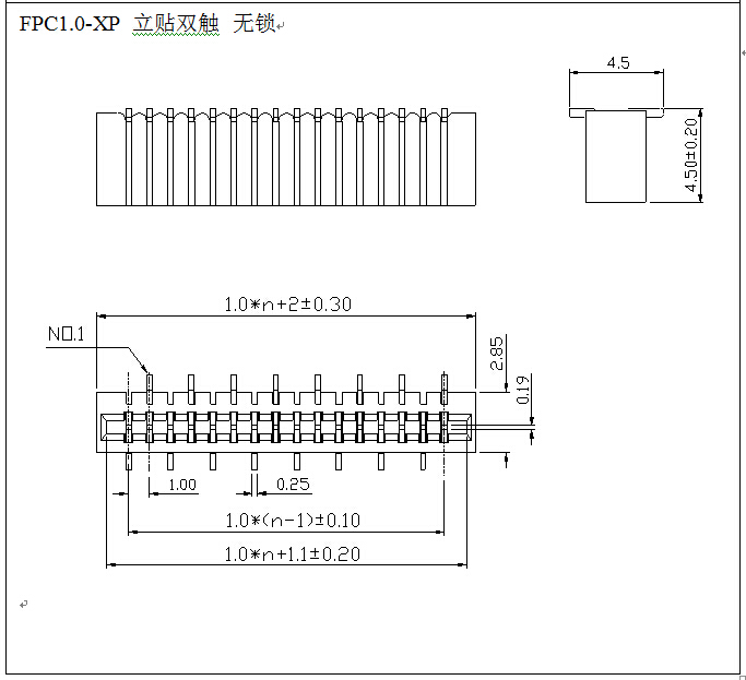 產品類型: FPC連接器 產品類型 FPC1.0-XP 間距 1.0mm 針數 4-60P 額定電流 0.4A 額定電壓 50V 接觸電阻 20 Milliohms Max 絕緣電阻 500 M Min 工作溫度范圍 -25oC+85oC 耐電壓 200V AC r.m.s 金屬材質 黃銅/磷
