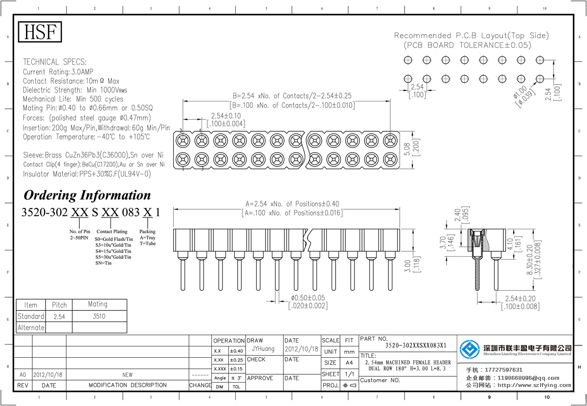 產品分類:圓孔排針排母連接器 產品型號:抗氧化 2.54MM 雙排 圓孔排母 生產 聯豐盈廠家 技術參數:額定電流:3.oamp接觸電阻:1om最大介電強度:MIN 1000vrms機械壽命:最少500次交配銷: