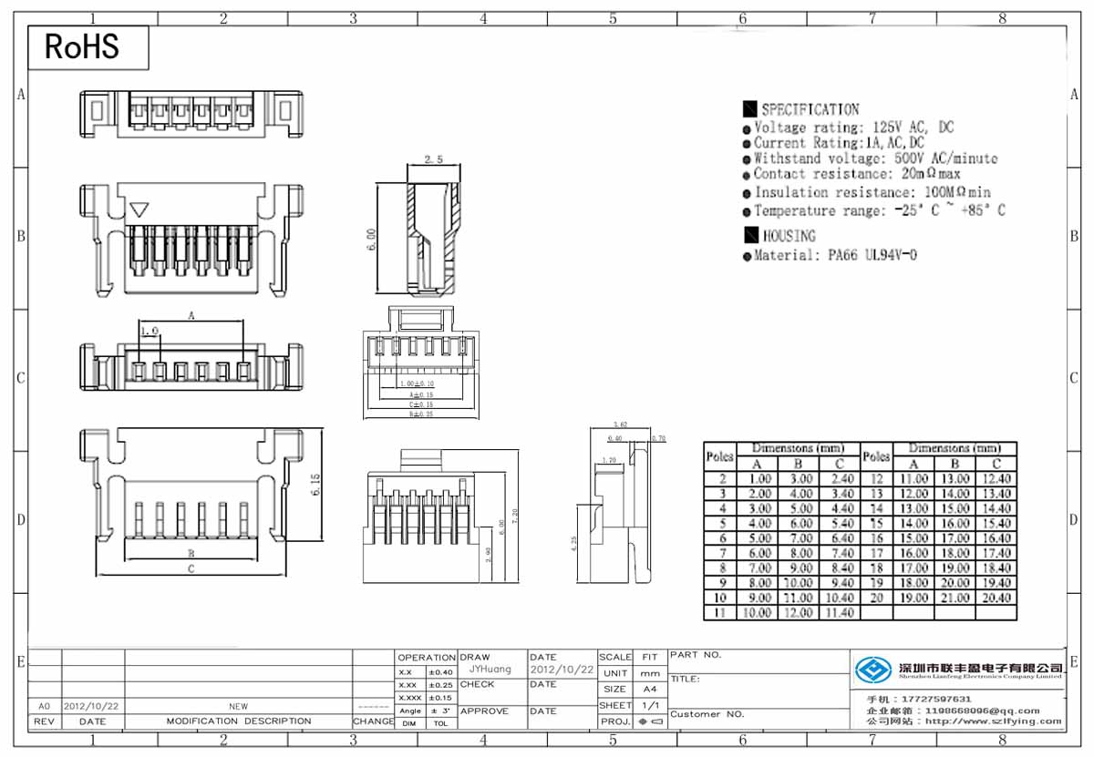 - 端子(Terminal):Phosphor Bronze ,Tin/Gold plated
