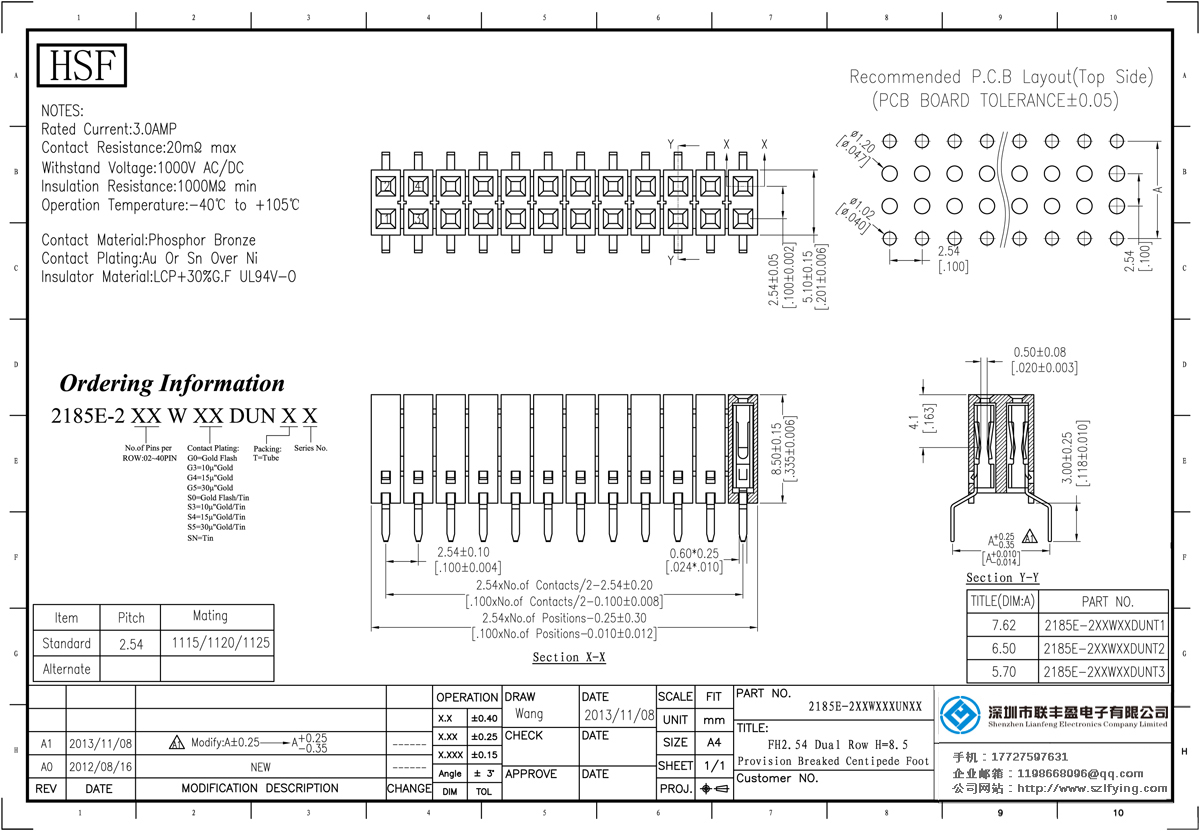 產(chǎn)品分類:排母連接器 產(chǎn)品規(guī)格:UL認(rèn)證 2.54MM H=8.5MM 雙排 蜈蚣腳 排母 聯(lián)豐盈 產(chǎn)品介紹:額定電流:3.0amp電流電阻:20m最大絕緣電阻:1000mmin耐壓:1000V AC /分鐘工作溫度:40﹣℃+ 105℃