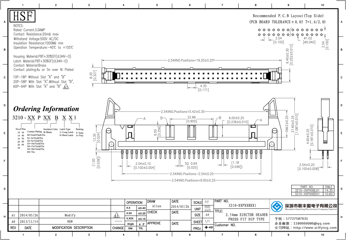 產品分類: 簡易牛角連接器 產品型號:2.54mm 壓接式 免焊式牛角 長/短耳扣 連接器 聯豐盈 技術參數:額定電流:3amp接觸電阻:2om最大承受電壓:500V的交流/直流絕緣電阻:1000m毫米的