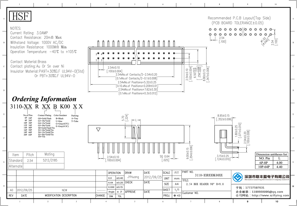 產品分類:簡易牛角連接器 產品型號: 聯豐盈 防火 2.54MM 90DIP 灰白色 簡牛 供應 技術參數:額定電流:1.52amp電流電阻:20m最大承受電壓:500V的交流/直流絕緣電阻:1000分鐘操作溫度: