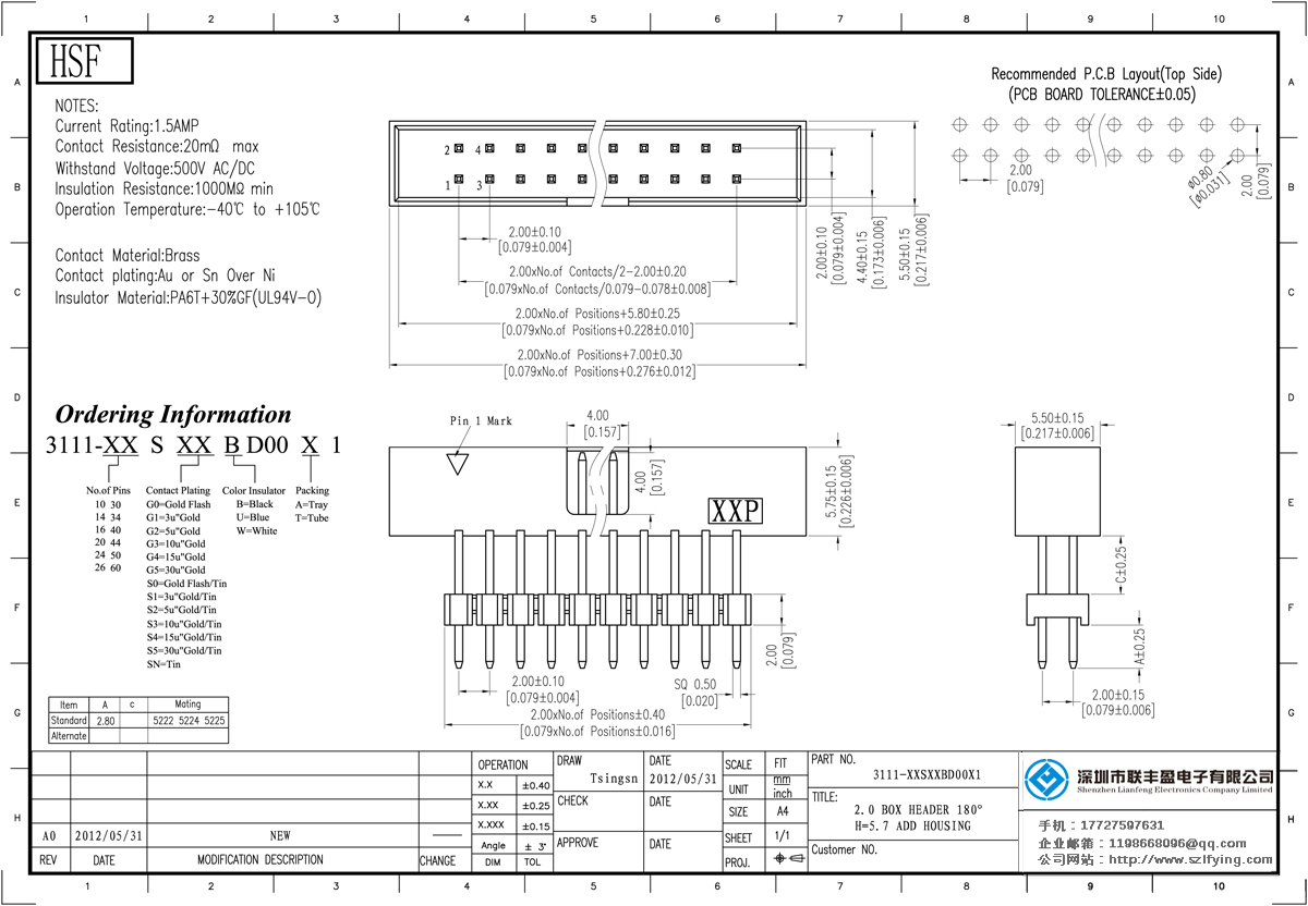 產品分類:簡易牛角連接器 產品型號:聯豐盈2.0MM 選鍍半金 180DIP 簡牛 生產 技術參數:額定電流:2.0amp電流電阻:20m最大承受電壓:500V的交流/直流絕緣電阻:1000分鐘操作溫度:40﹣℃